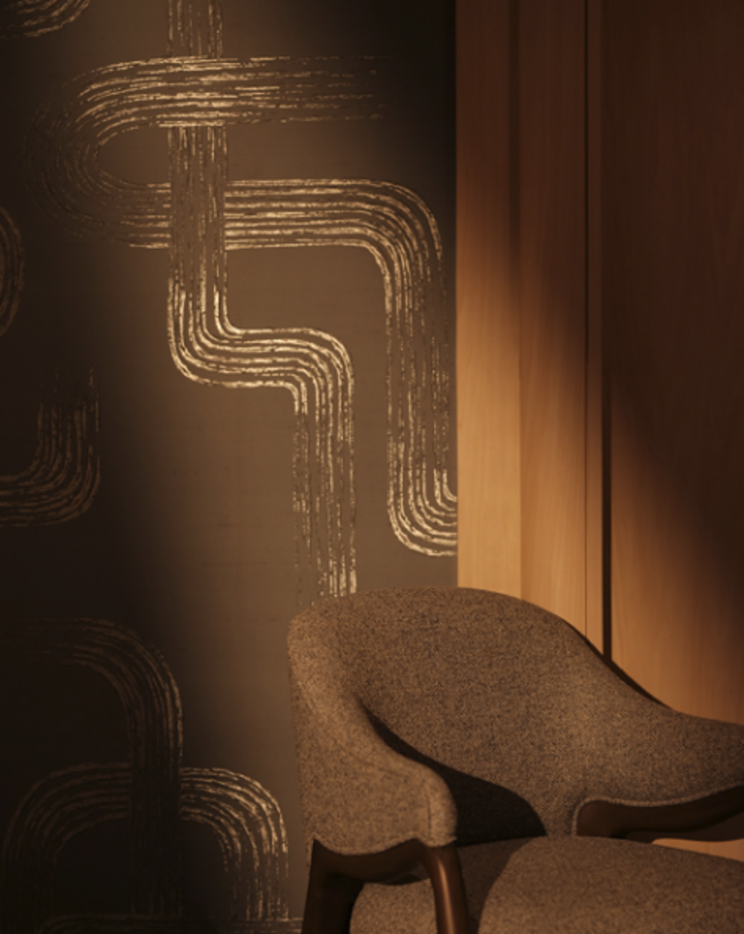 Through a rhythmic progression of spaces, Fu establishes an intuitive journey throughout the hotel. Once guests enter the archway from the Entrance Arrival, they are greeted by Plume - an intimate and welcoming sanctuary that invites them to enjoy convivial moments from dawn to dusk. Here, a commissioned mural from French artist Elsa Rameau features a motif of the Taiwan blue magpie against a deep terra cotta and camel sand palette.