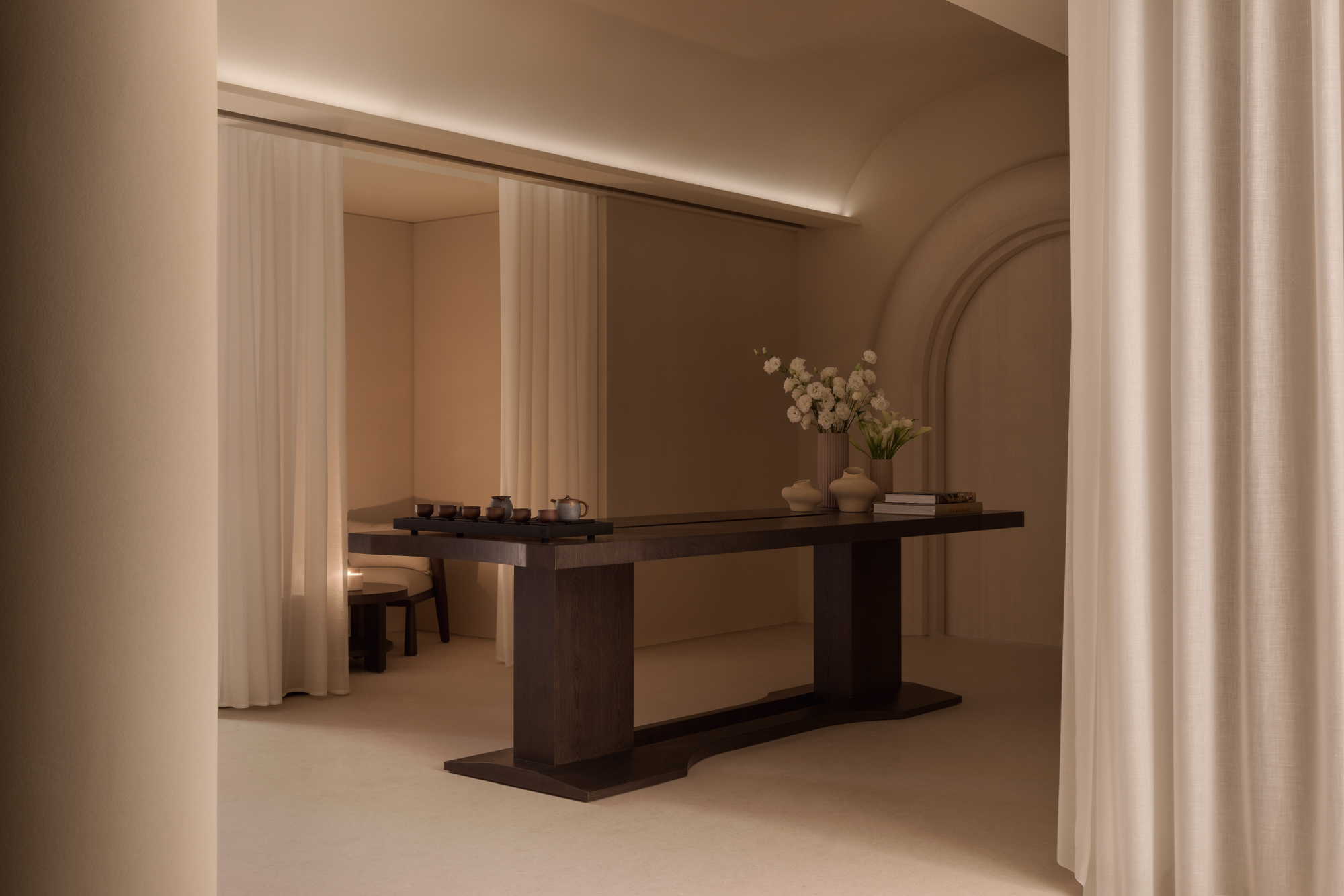 The spa and wellness areas exemplify masterful spatial design with a strong focus on the notion of serenity. Barrel-vaulted ceilings evoke a sense of ascending tranquillity, drawing inspiration from sacred architectural forms. Treatment rooms feature cross-vaulted ceilings that work in harmony with precise geometric proportions to enhance the wellness journey. “My goal is to craft a wellness sanctuary imbued with the spirit of profound stillness, where every detail contributes to an atmosphere of deep repose. Fu notes, "This architectural expression, commonly found in churches or monasteries, creates a celestial feeling".